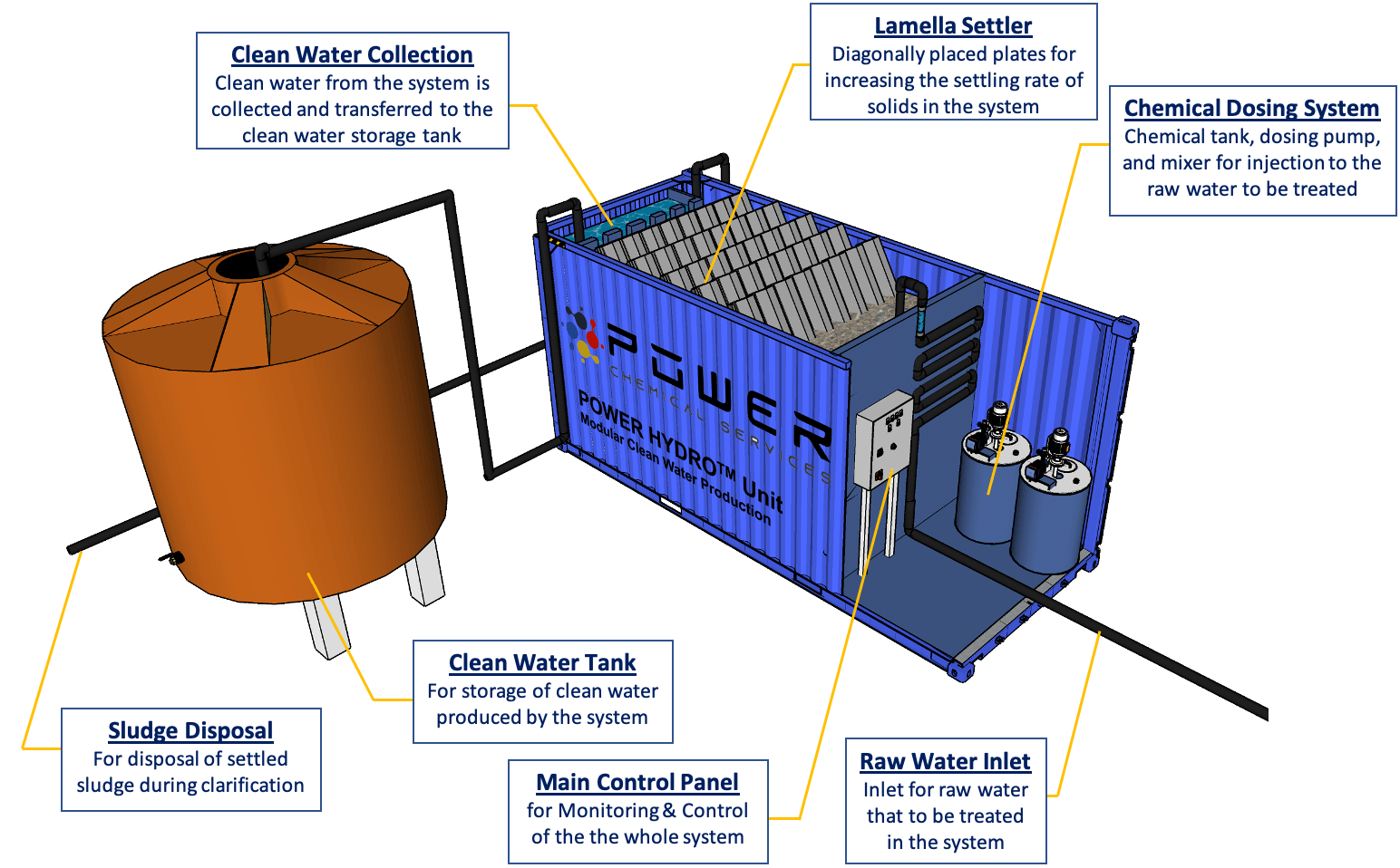 The POWER HYDRO™ unit mainly consists of 2 major parts, the water clarification unit & the disinfection unit. Whether it is water for your domestic uses or for any industrial uses our POWER HYDRO™ unit are designed for easy & constant supply of clean water.